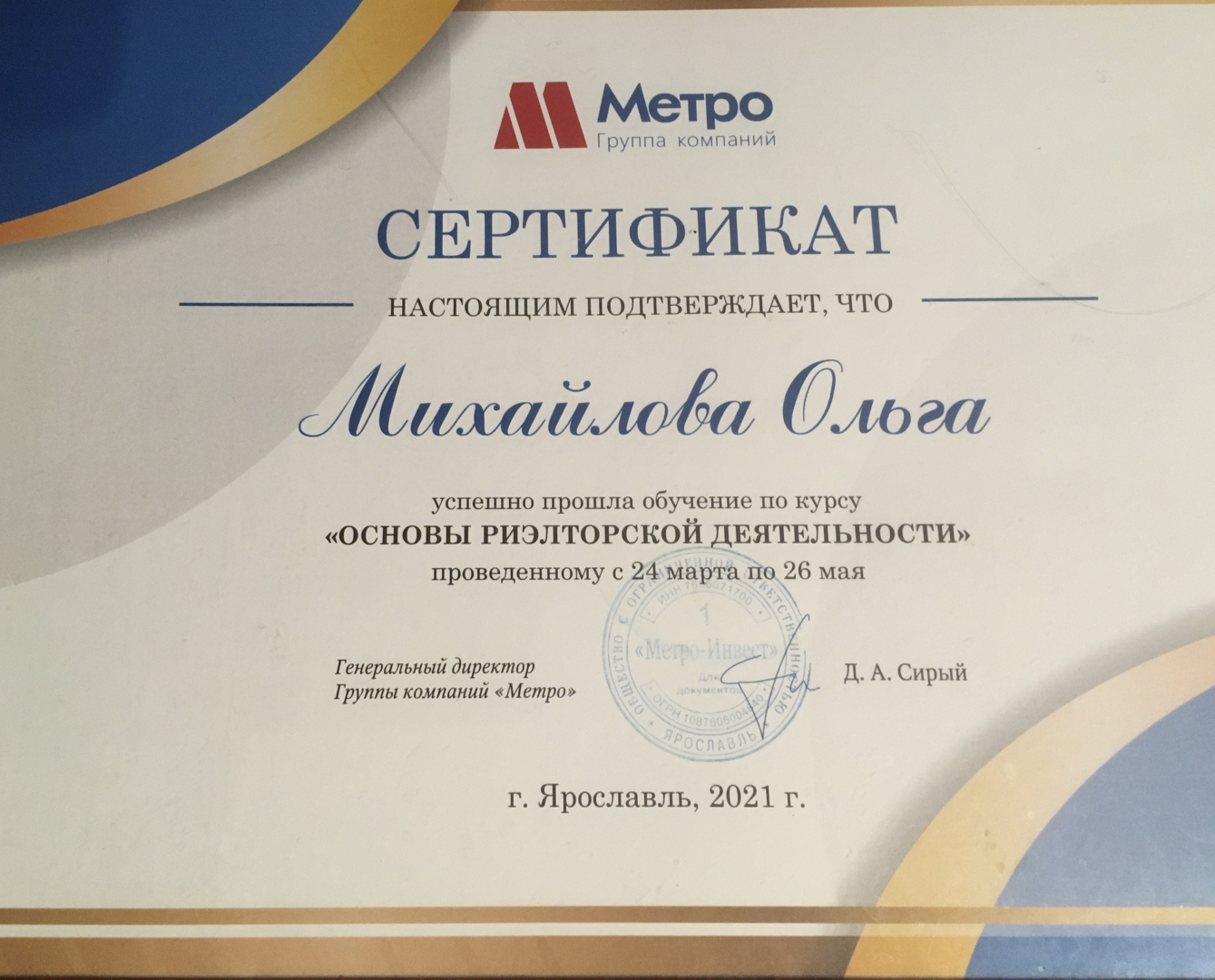 «Союз Риэлторов»- Риэлтор 27.11.2022 -н.в. ГК «Метро» агент по недвижимости 2020- 27.11.2022гг .
