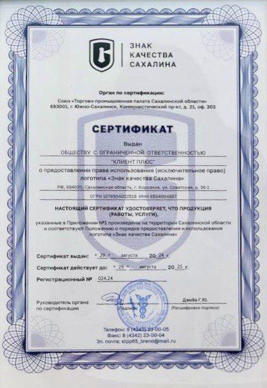 ООО «КЛИЕНТ ПЛЮС» – более 15 лет на рынке! Компания «КЛИЕНТ ПЛЮС» создана в результате объединения двух крупнейших компаний Корсакова – «Сахалинское Юридические Агентство» и «Центр Недвижимости» в одну сеть офисов права и недвижимости, чтобы оказывать клиентам более широкий спектр услуг, связанных с решением задач в области права и недвижимости. Обе компании обладали многолетней историей,...