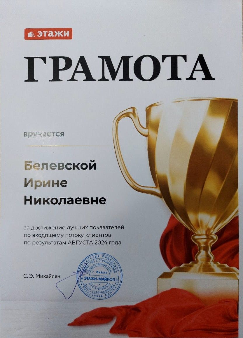 Работаю специалистом по недвижимости компании Этажи в городе Майкопе