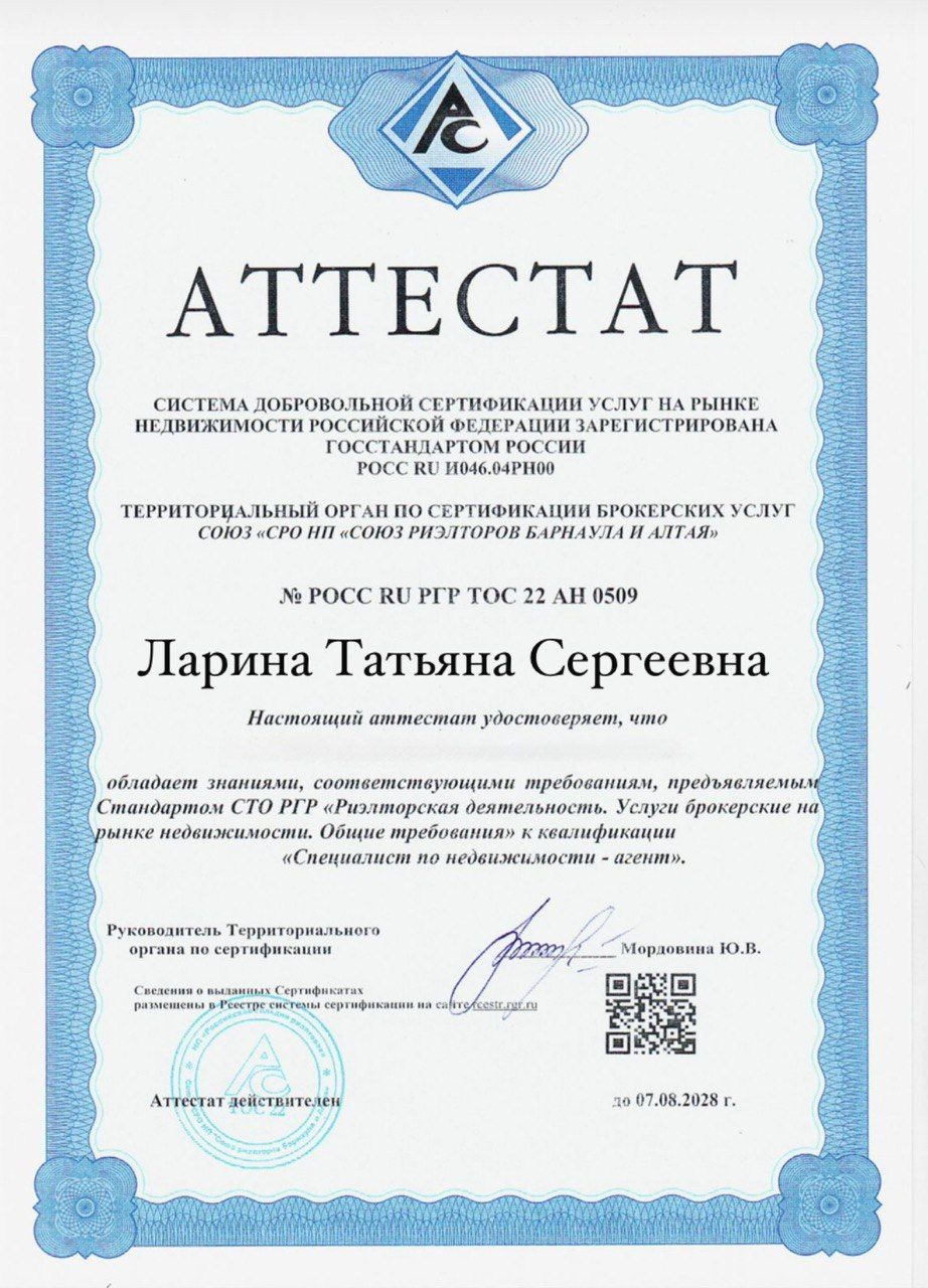 Татьяна очень хороший риэлтор,рекомендую,всё доступно объяснит,и расскажет,приятная в общении