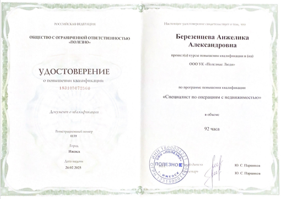 Хочу поблагодарить Анжелику Александровну, за все, что для нас сделала. Спасибо за советы, добрые слова, поддержку, понимание, отзывчивость и за стремление оказать помощь. Отличный специалист в своём деле. Всегда на связи, всегда подскажет, объяснит. Очень рады, что работали именно с ней.