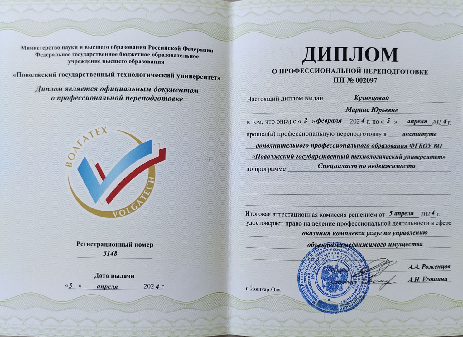 Добрый день! Меня зовут Марина Юрьевна Кузнецова. Я работаю в сфере недвижимости с 2020 года. Ценю каждого клиента!