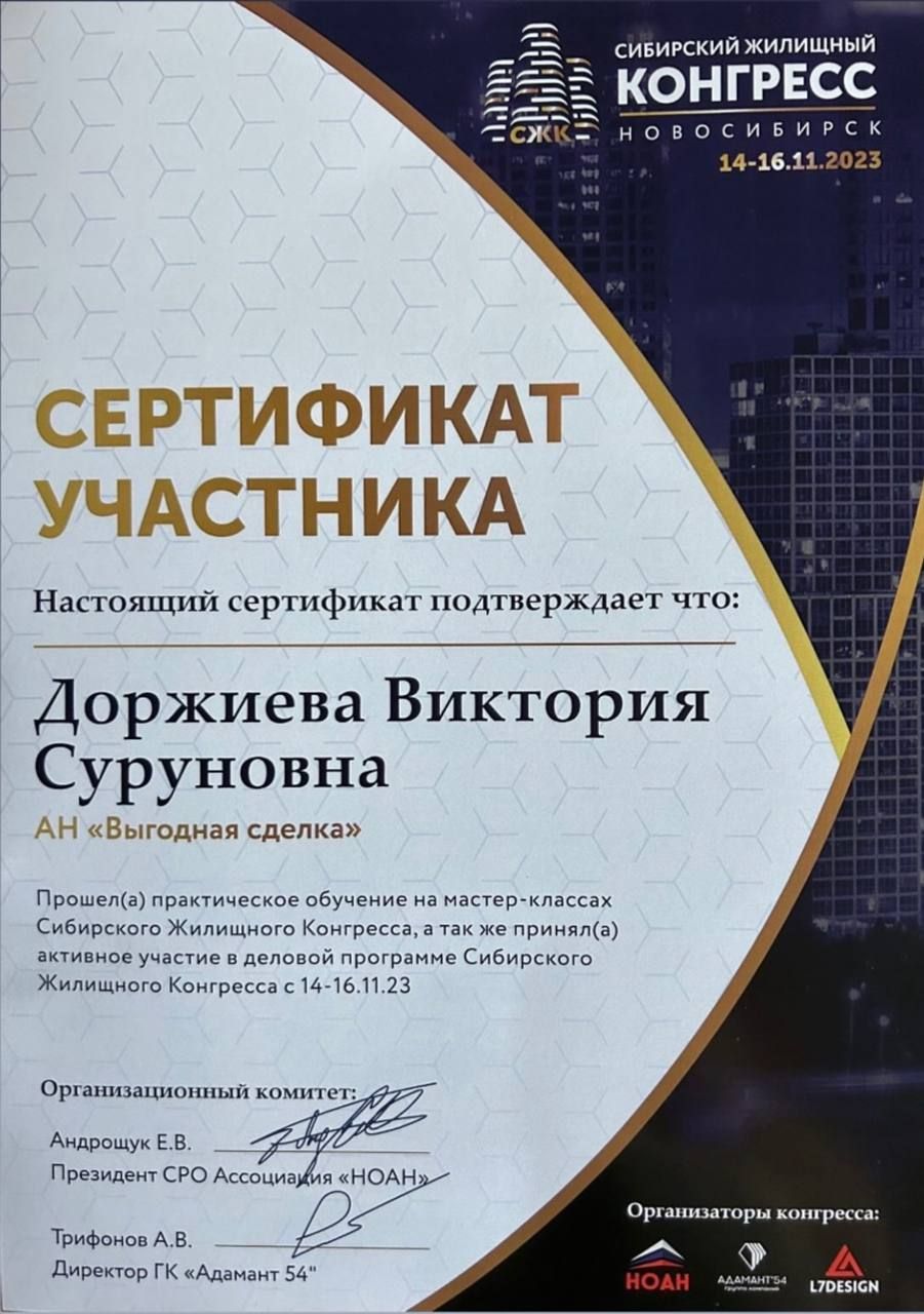 Хочу выразить огромную благодарность риэлтору Виктории Суруновне за профессионализм и оперативность! Обратились в конце декабря с желанием купить квартиру по семейной ипотеке, но сомневались, успеем ли оформить всё до конца года из-за слухов о грядущем подорожании. Виктория не просто успокоила, а взяла процесс в свои руки. Вся сделка — от поиска до регистрации — заняла одну неделю! Спасибо...