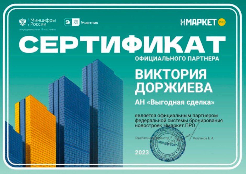 Благодарю, Викторию за проделанную работу, сделала невозможное возможным. 🥳Помогла нам приобрести квартиру евротрешку в сотых без пв, что крайне сложно. Была с нами на связи чуть ли 24/7 ☺️ обязательно обращайтесь к Виктории, не пожалеете. 🙌