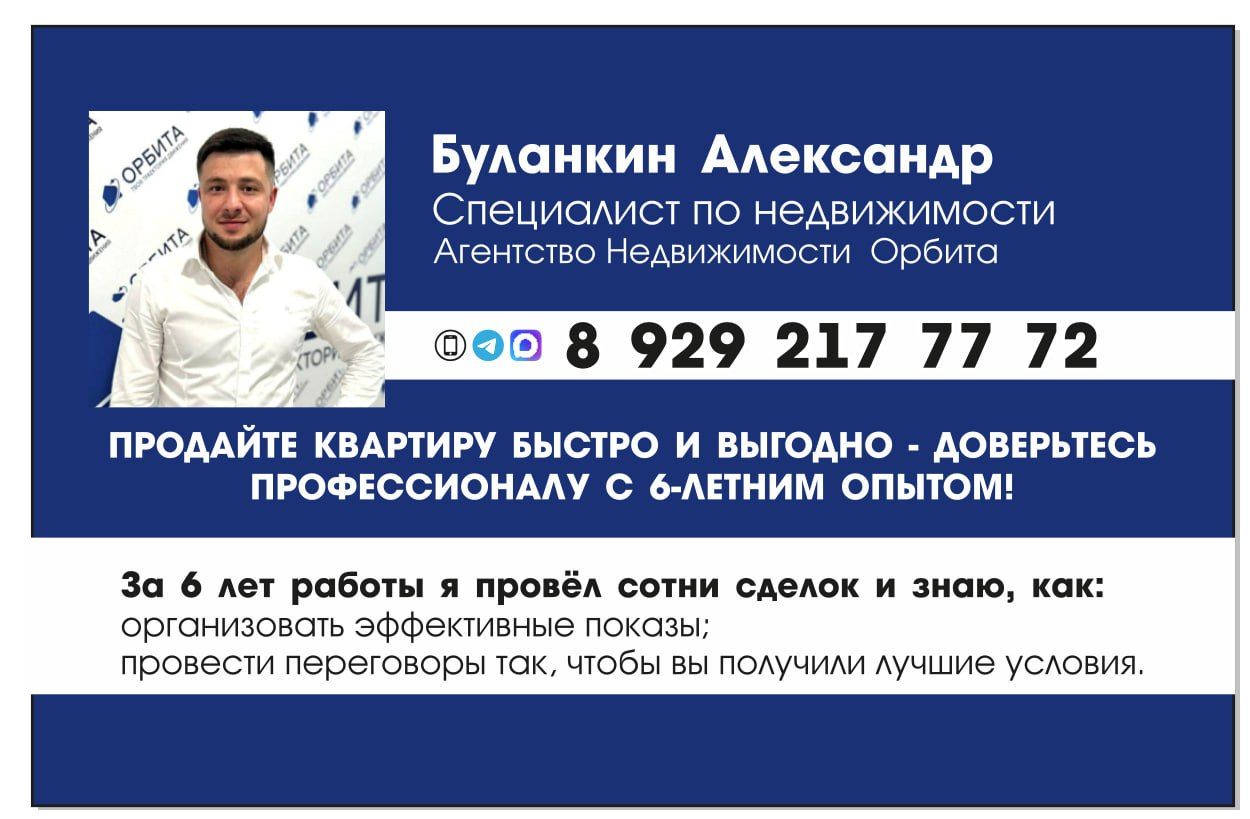 Сделка состоялась! Хочу выразить огромную благодарность, Буланкину Александру Юрьевичу, за помощь в покупке нашей квартиры! С самого начала сотрудничества Александр Юрьевич, проявил высокий профессионализм, и индивидуальный подход. Учёл, все наши пожелания, и быстро нашёл, идеальный вариант именно для нас. Особенно хочу отметить, его внимательность к деталям, и честность в работе. Александр...
