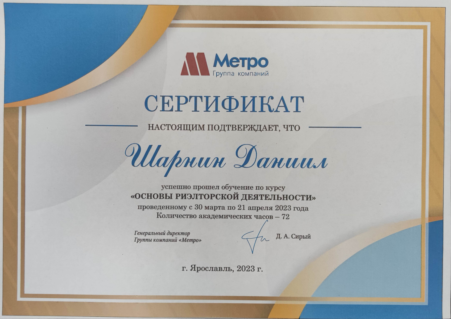 Искренне благодарим Даниила Шарнина за профессионально проведённую сделку . Несмотря на то, что сделка была сложной, участвовало несколько дольщиков,проживающих в разных городах, Даниил уверенно преодолел все препятствия и блестяще вывел нас на сделку, помогая нам во всех вопросах и всё время оставаясь на связи. Рекомендуем его как профессионального риэлтора, болеющего душой за свою...