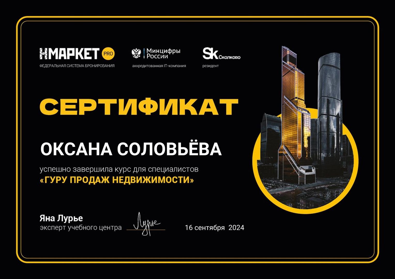 Отличная работа! Постоянно на связи, контроль ситуации на высшем уровне. Очень приятно было работать, Оксана была с нами от начала до конца, мы очень довольны нашей недвижимостью)
