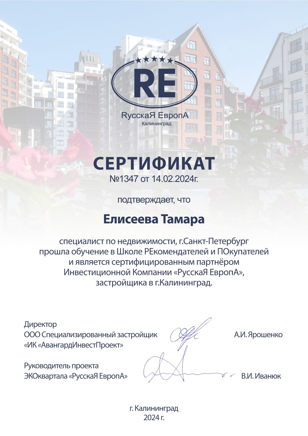 Здравствуйте, меня зовут Тамара Елисеева. Я агент по недвижимости, с которым можно будет просто, понятно и безопасно купить или продать недвижимость, оформить ипотеку, КАСКО, ОСАГО и другие виды страхования, сделать оценку недвижимости, заказать переезд (у меня свой автопарк), ремонт и клининг.