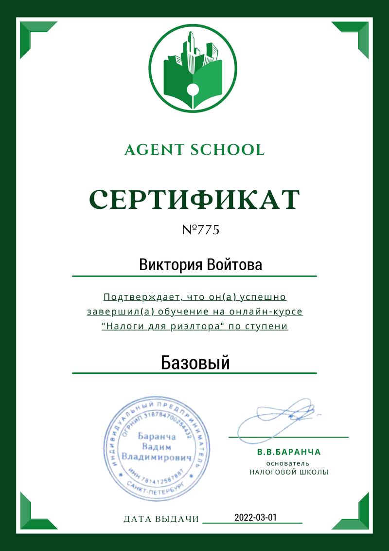 Хочу выразить благодарность риелтору Войтовой Виктории за помощь и организацию сделки по приобретению дома. Не смотря на то, что собственность была в долях и привлекались заемные средства (ипотека), сделка прошла четко, в установленный срок, в спокойной деловой обстановке. В результате все участники остались довольны. В этом заслуга грамотного риелтора, имеющего большой опыт, понимающего нюансы и...