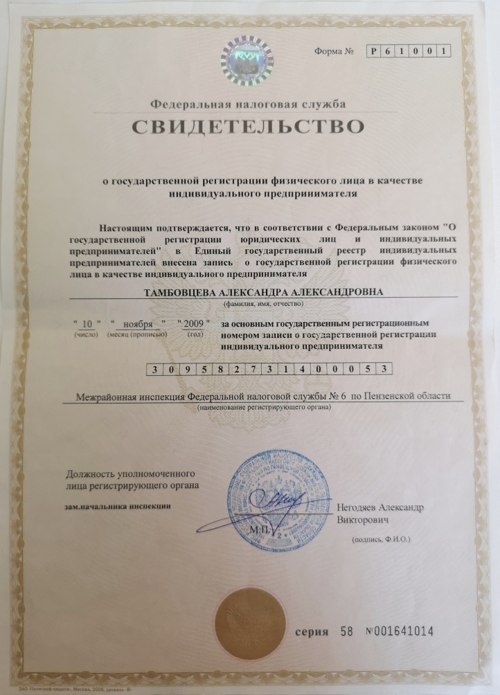 Официально как ИП Тамбовцева работаю с 2009 года, что подтверждаю свидетельством (смотрите фото). Специализируюсь продаже/аренде, оформлении ипотек, подбору объектов, оформлению и полному сопровождению сделок.