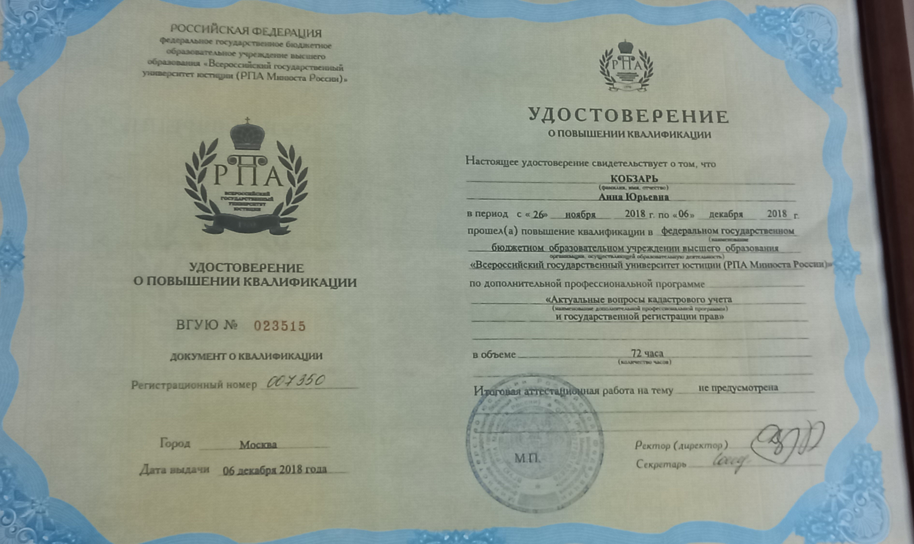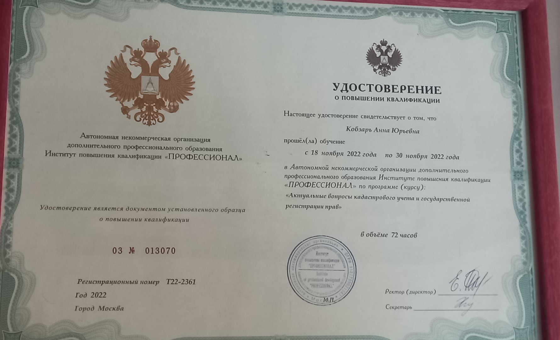 Немного о своём профессиональном опыте! Более 10 лет отработала в Управление Росреестра по Тверской области, из них 4 года в статусе государственного регистратора прав. Кто такие государственные регистраторы прав!? Государственный регистратор прав является ключевой фигурой в системе государственной регистрации прав и кадастрового учёта, на которого возложены ответственные задачи по принятию...