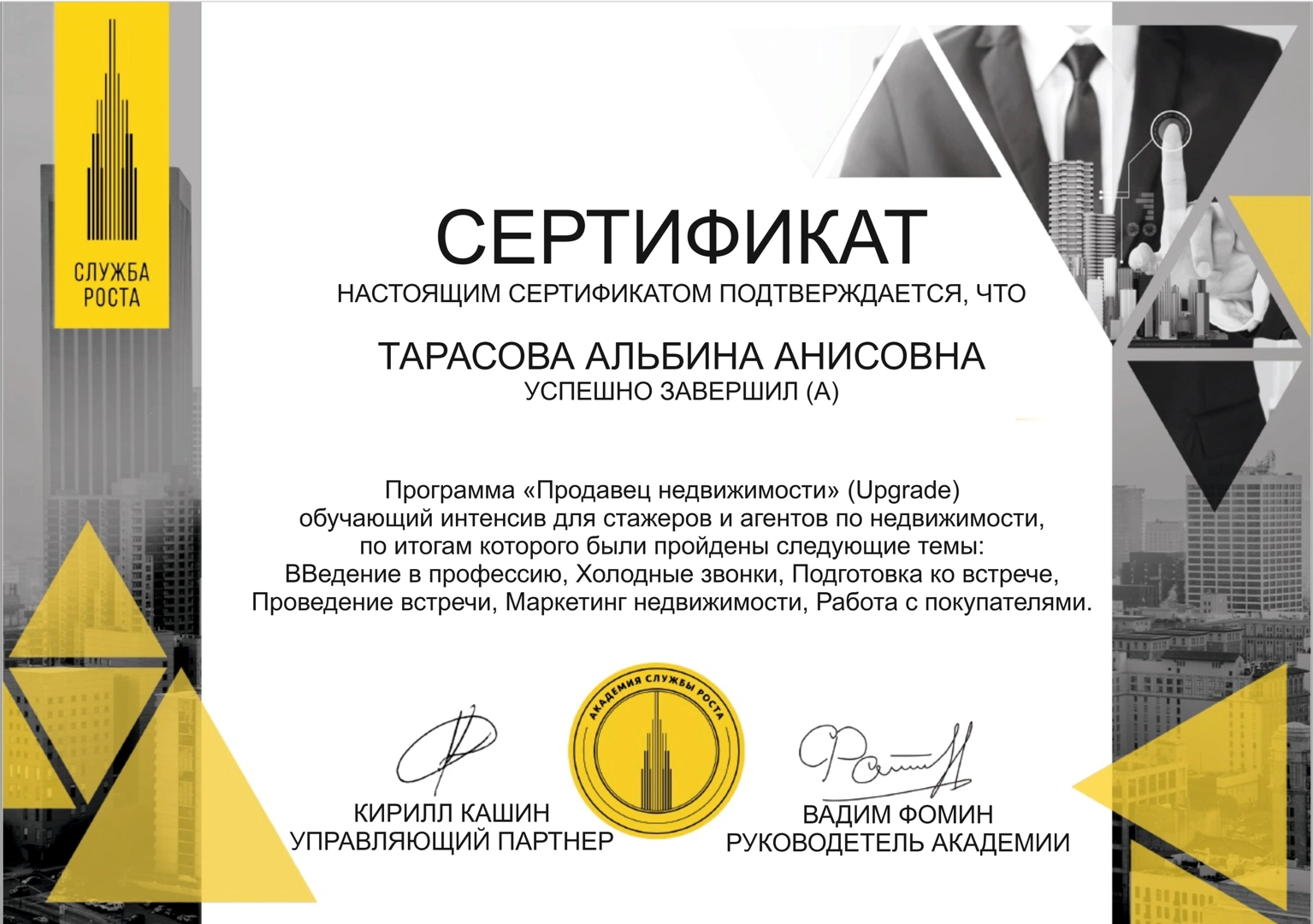 - сопровождение сделок