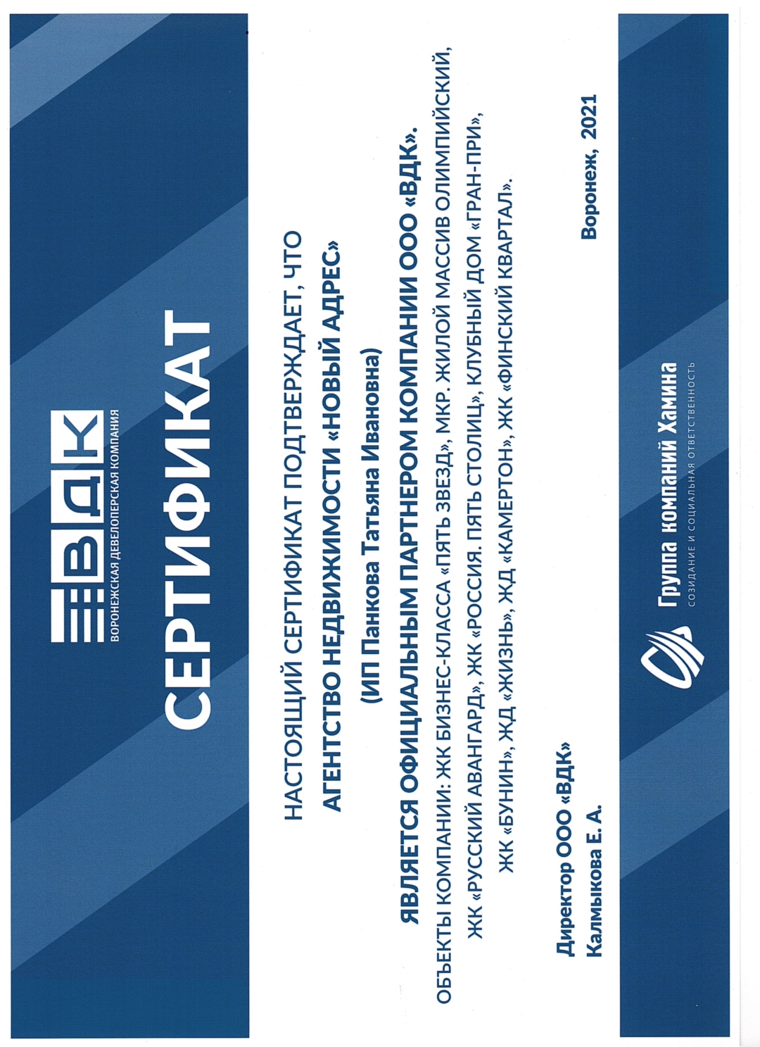 Приветствуем Вас от имени агентства недвижимости "Новый адрес"! Наша компания работает на рынке недвижимости Воронежа и области уже более 15 лет. Мы являемся членами Гильдии Риэлторов Черноземья, а так же партерами крупнейших банков и строительных компаний. Мы готовы помочь Вам с любыми процессам, связанными со всеми видами недвижимого имущества. Большой опыт в проведении сделок, признание...