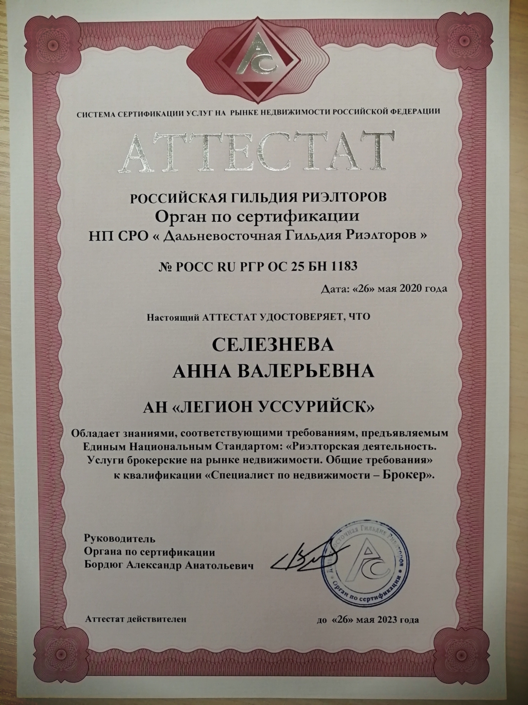 Работаю в риелторской компании "Легион Уссурийск", специализируюсь на сделках по купли-продаже объектов недвижимости, сопровождаю сделки любой сложности.