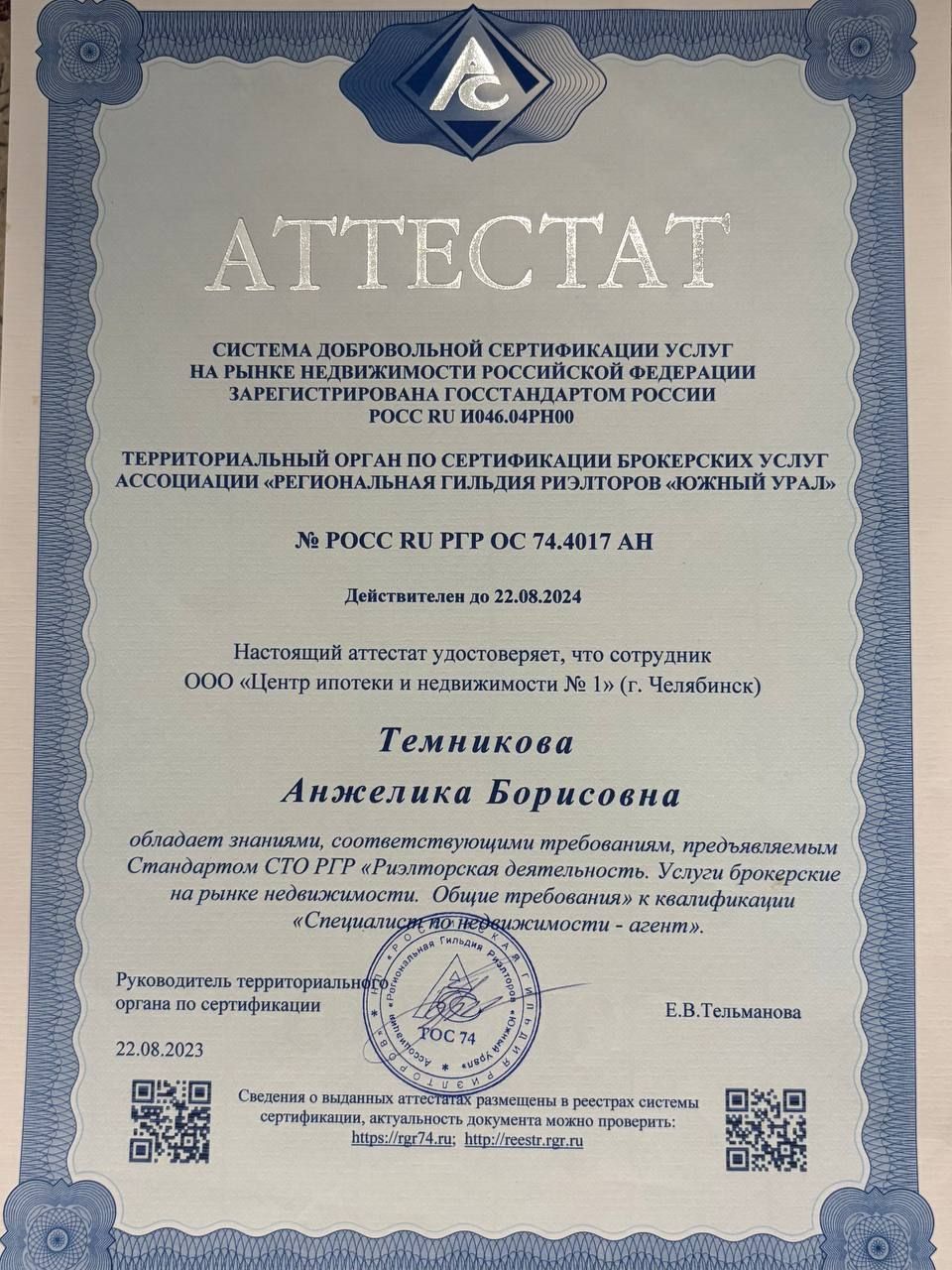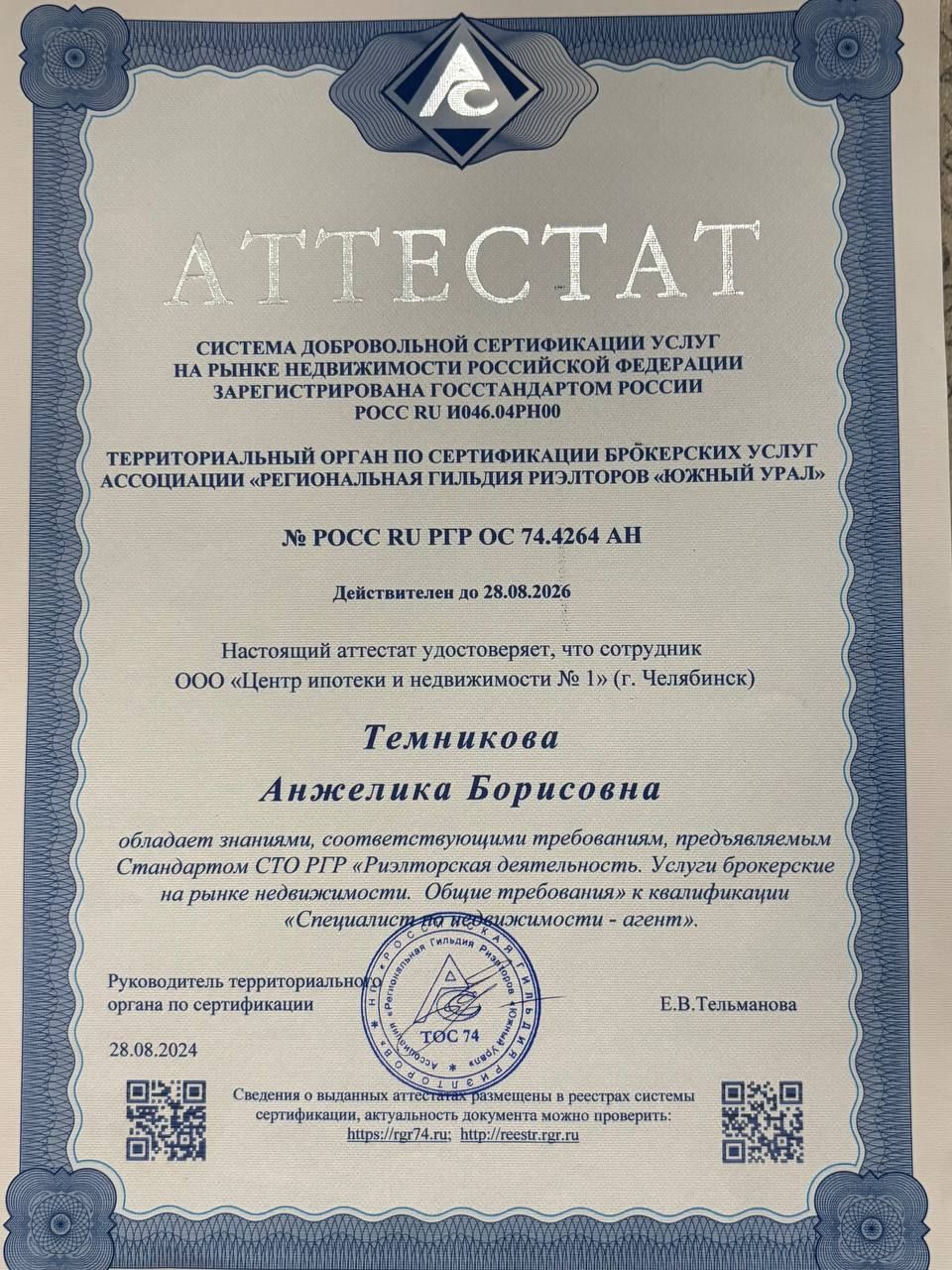 Большое спасибо риелтору Темниковой Анжелике Борисовне за оперативность, быстрое и грамотное проведение сделки! 28 декабря выбрали квартиру, а 30 декабря уже была сделка! Все прошло успешно! Рекомендую!!!!