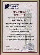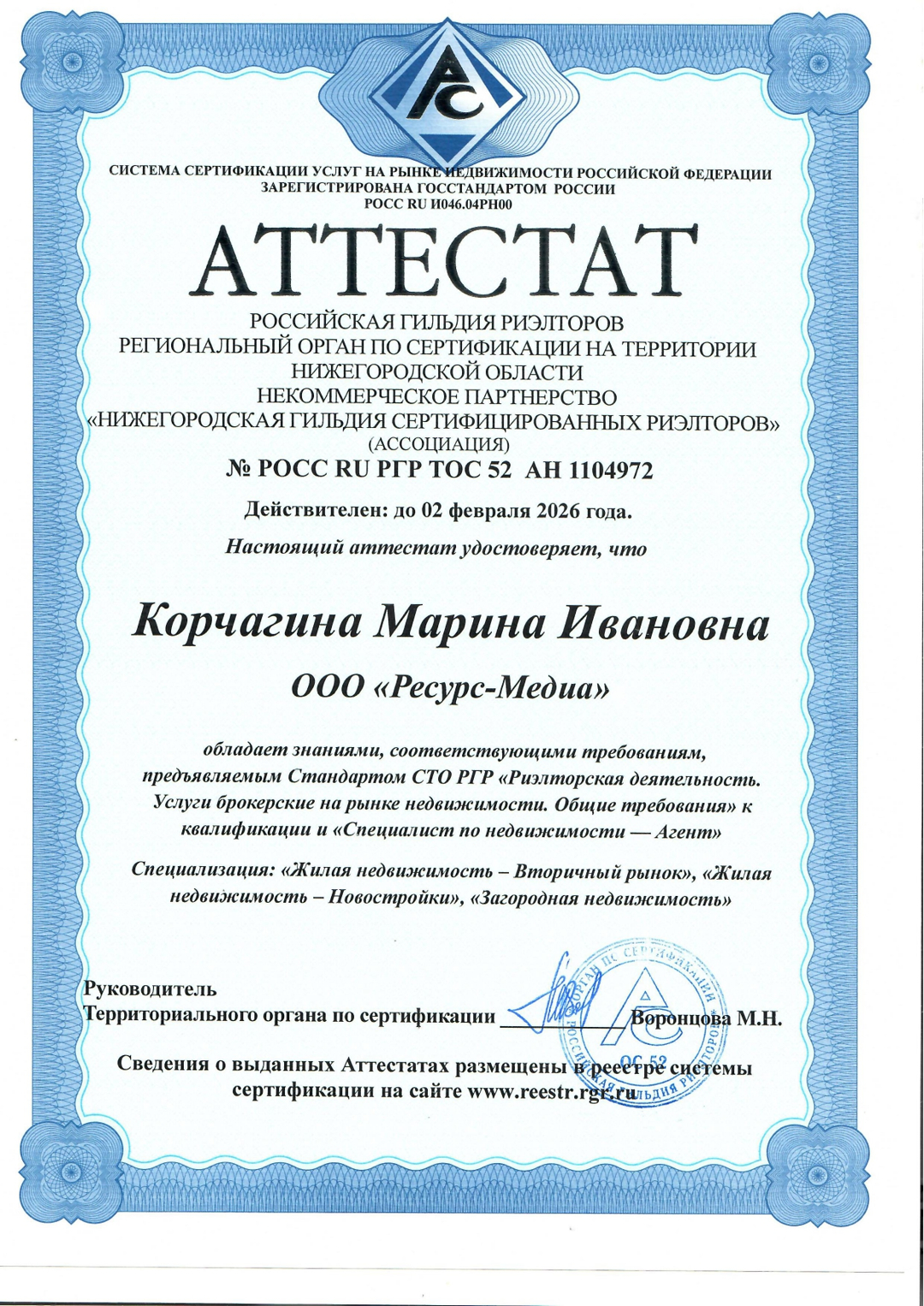 Работаю в компании ООО " Ресурс М" с 2015 года. Прошла обучение по специализации " Специалист по недвижимости- Агент", повышение квалификации: семинара Марины Некрасовой "Как достичь цели в переговорах", Родиона Совдагарова " Алгоритм взаимодействия с клиентом", Сергея Круца " Технологии активных продаж в риэлторском бизнесе"