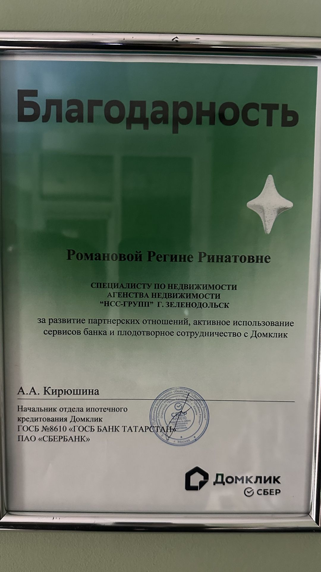 Отличное агентство , опытный руководитель Романова Регина Ринатовна , активный риелтор Шамсутдинова Олеся Витальевна! Слажено, качественно и быстро работают ! Сделка прошла легко и удачно ! Огромная благодарность! Всем рекомендую ! Вы супер !