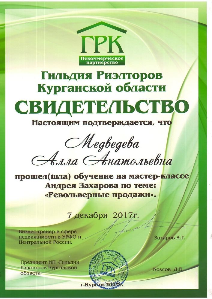 Выражаем огромную благодарность Медведевой Алле Анатольевне профессионал своего дела. За короткий срок нашла покупателей, всё объяснила. Мы вообще ничего не делали))) Мы просто пришли в банк! Мы продавали квартиру сами при этом были в одном городе - квартира в другом- покупатели в третьем. У нас была дистанционная сделка в Сбербанке через Домклик. (Очень удобно)Все прошло очень быстро,без лишних...