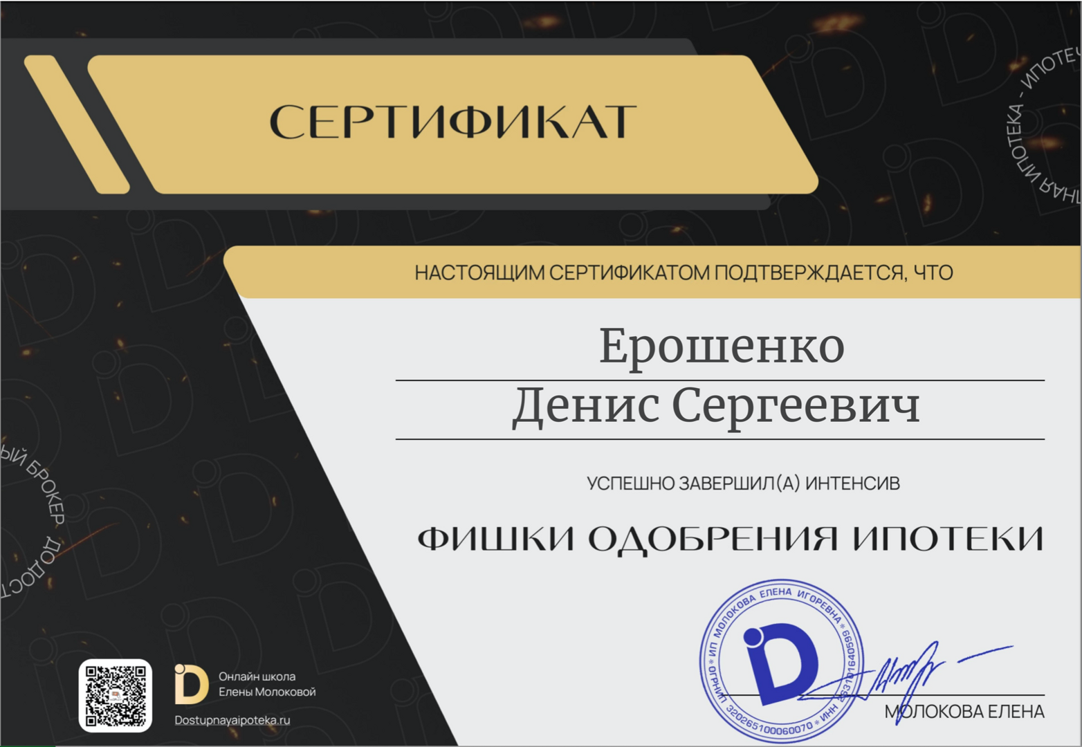 Огромная благодарность Денису Сергеевичу за проделанную большую работу! Сделка за 3 дня, оказывается реально, когда есть такие специалисты! Здоровья, счастья, больших успехов! Спасибо!!!