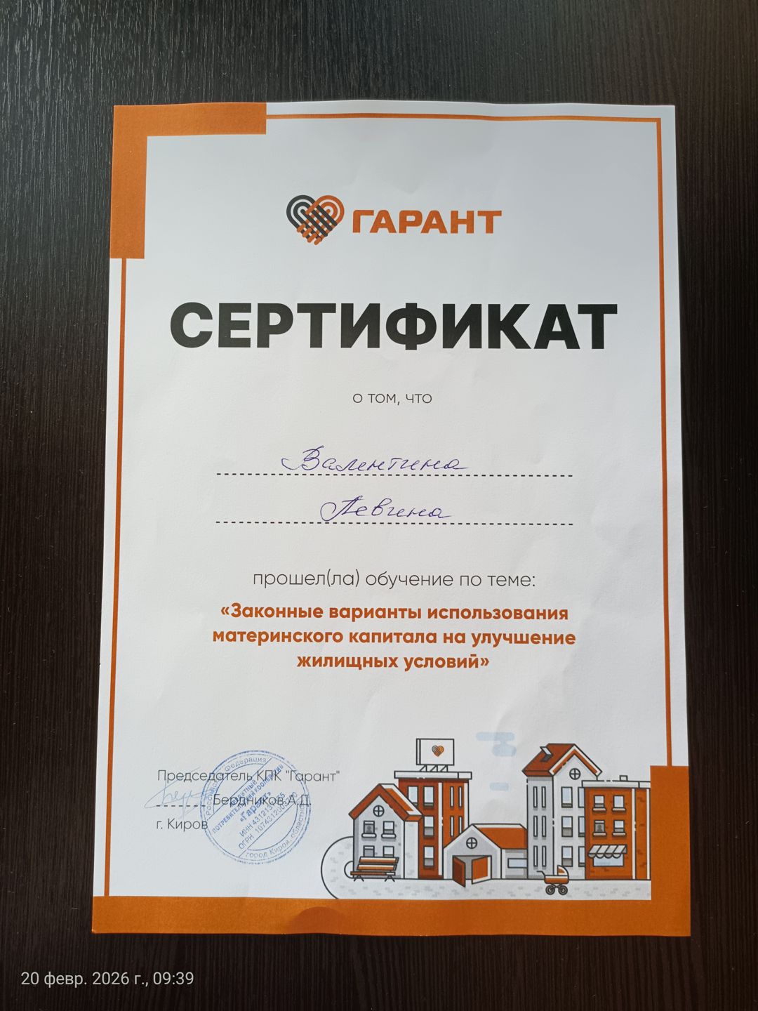 Благодарим Валентину Левину за помощь в приобретении квартиры в строящемся доме. Валентина оперативно помогла нам оформить сделку, работали с мат. капиталом. Сделка состоялась уже через неделю после получения мат. капитала. Валентина помогла приобрести уже вторую квартиру для нашей семьи! Спасибо большое за полное сопровождение на всех этапах, всегда была с нами на связи и консультировала нас....