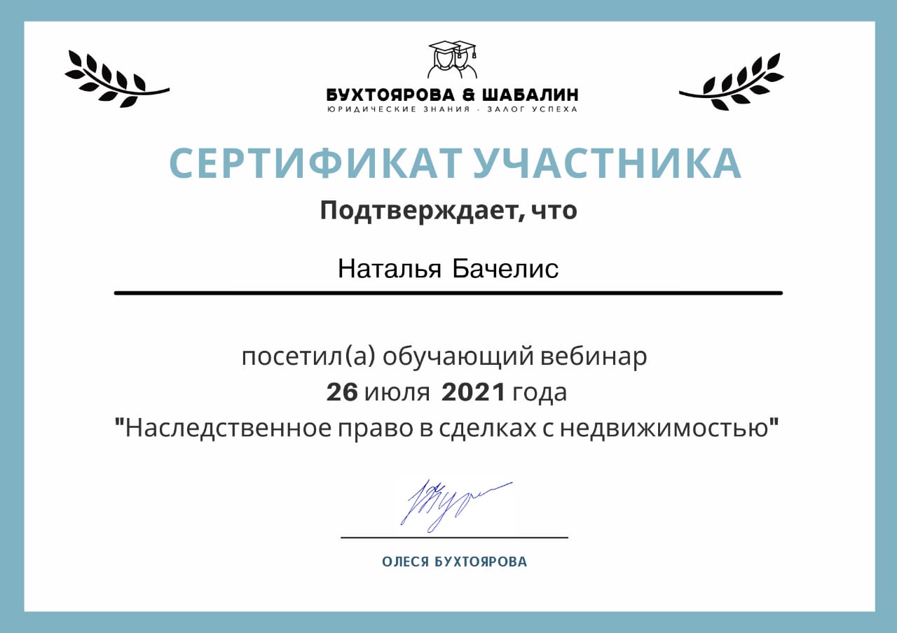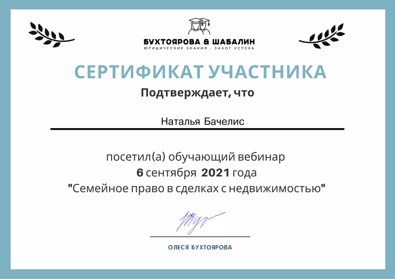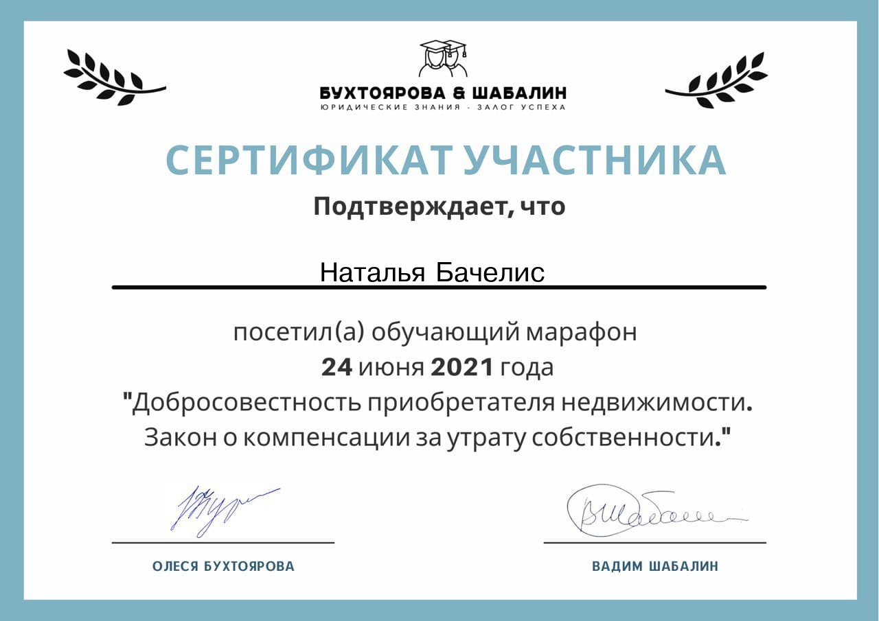 Доброго времени суток, меня зовут Бачелис Наталья я являюсь руководителем Агенство недвижимости ШАНС . Более 10 лет я помогаю людям купить квартиры мечты, а так же продать , осуществляю юридическое сопровождение сделок, одобрение по ипотеки для моих клиентов абсолютно бесплатно. Постоянно прохожу обучения, и веду тренинги для начинающих риэлторов . Каждого клиента держу за руку вкладывая душу...