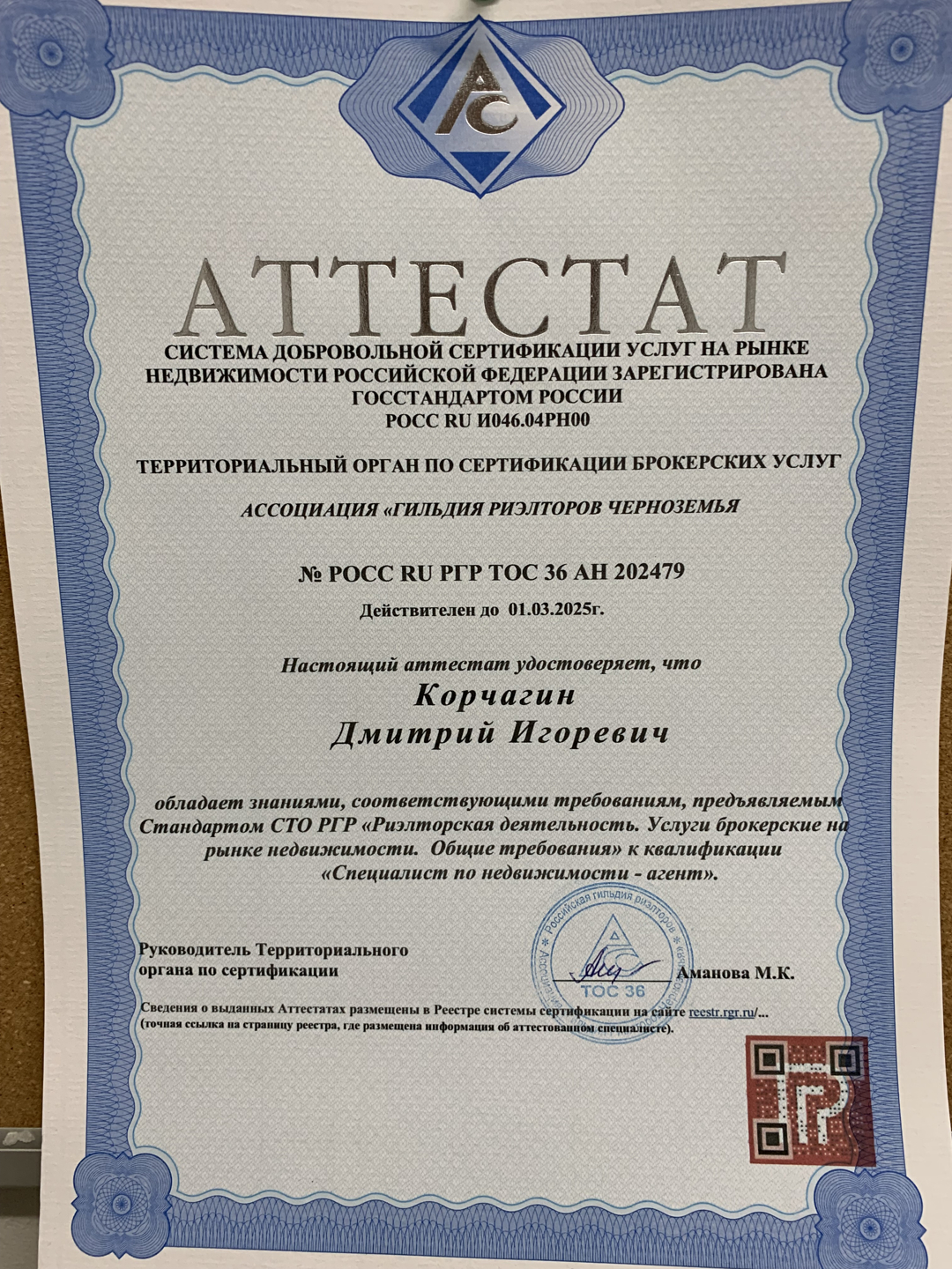 Продажей квартиры в г.Воронеже,занимался Дмитрий Корчагин по доверенности, так как мы иногородние, сделку провел на ура, все документы, подготовка к сделке все провел безукоризненно, всегда на связи, всегда внимателен к клиенту, молодец, и огромное спасибо за его работу!!!!!