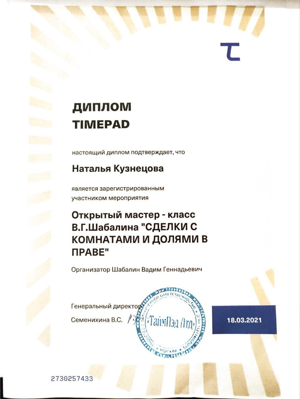 Хочу выразить огромную благодарность Натальи за помощь в покупке квартиры! Плюсы работы: 1. Оперативность в предоставлении информации. 2.Решает вопросы 24/7 (отвечала даже поздно вечером). 3.Сэкономила мое время и нервы. 4. Сопровождение. Был полный пакет "под ключ": от просмотра до момента, когда я получил ключи и подписал акт приема-передачи. Сделка прошла максимально гладко. Спасибо за ваш...