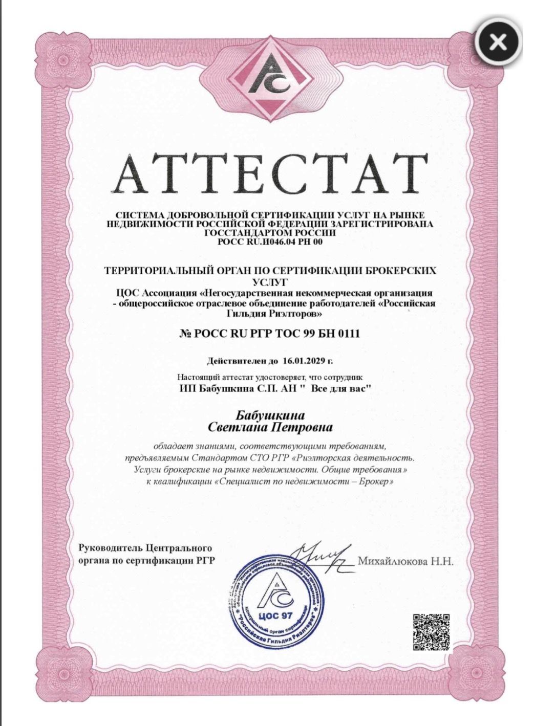 Хочу выразить огромную благодарность нашему риэлтору - Бабушкиной Светлане Петровне! Однозначно сейчас, в наше время, без такого специалиста невозможно произвести операции с недвижимостью. Всё было профессионально и быстро. Еще раз спасибо ей огромное! 🙏