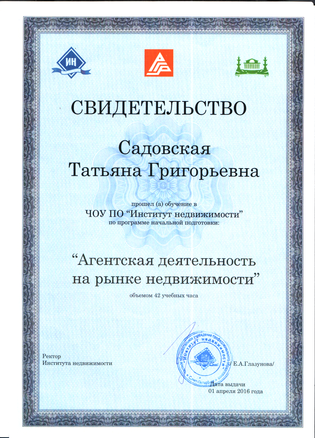Я живу в другом регионе и думала,что покупка квартиры в Санкт-Петербурге мероприятие очень сложное и практически невыполнимое. Хочу поблагодарить Садовскую Татьяну Григорьевну. Очень грамотный и знающий свою работу риэлтор. Все подробно объясняла и давала советы. Начиная от выбора жилого комплекса и застройщика и до оформления документов. На просмотры ездила лично и все подробно показывала. Так...