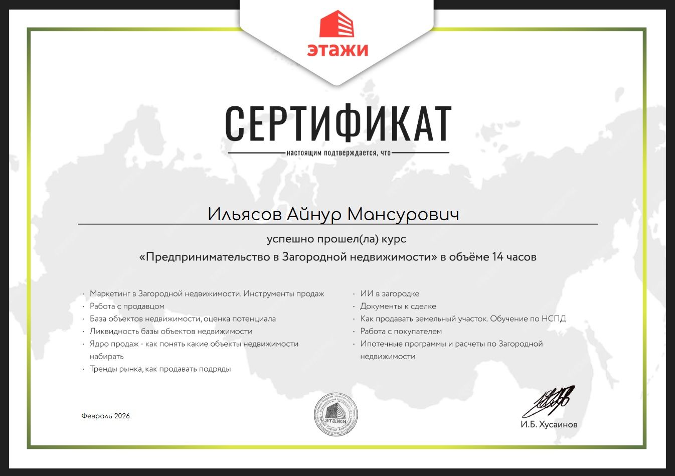 Айнур Ильясов Риелтор-эксперт | «ЭТАЖИ-КАЗАНЬ» Надежность, знание нюансов, гарантии. Ваш проводник в мире недвижимости. Опыт работы: 3 года в крупнейшем агентстве России География: Казань, Москва, Калининград, Дубай (ОАЭ) Мои экспертные услуги для вас: 🏢 Новостройки без комиссии 🌲 Эксперт по загородной недвижимости 🏡 Вторичное жилье с гарантией безопасности ⚖️ Сложные и нестандартные...
