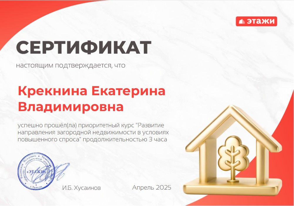 Большое спасибо Екатерине! Быстро без лишних хлопот купили дом!