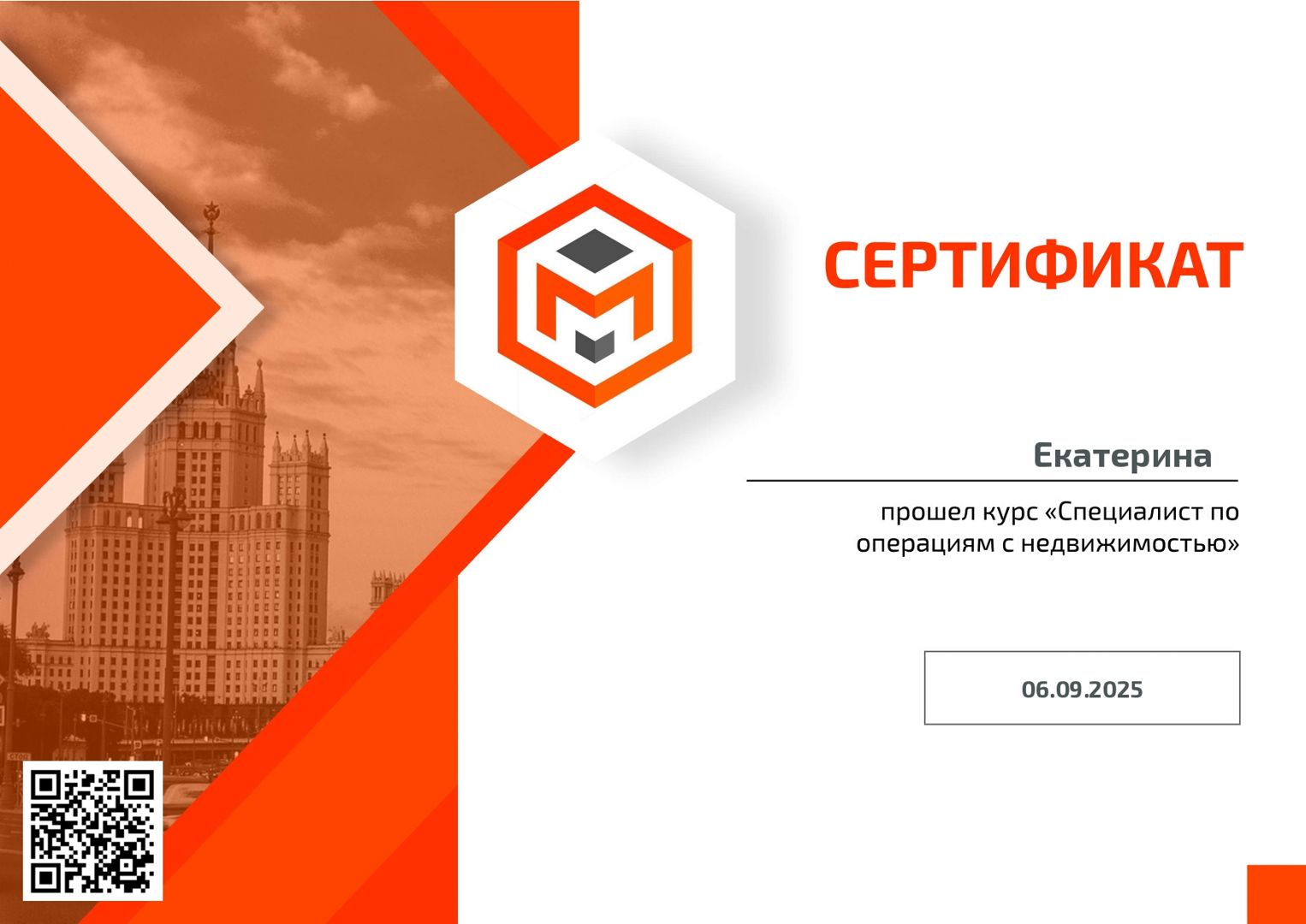Хочу поделиться опытом работы с Екатериной. В первую очередь хочу отметить, что она очень опытный и грамотный специалист. Помогла провести сделку быстро и на высшем уровне. Рекомендую её как надёжного специалиста!