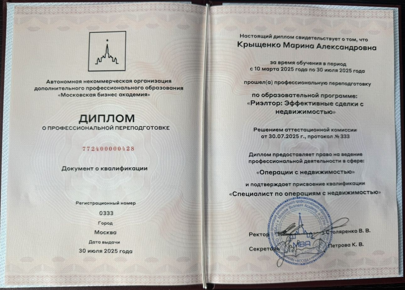Марина КрыщенкоРиелтор ответил 6 сентября 2025Виктория, благодарю Вас! Было приятно работать.