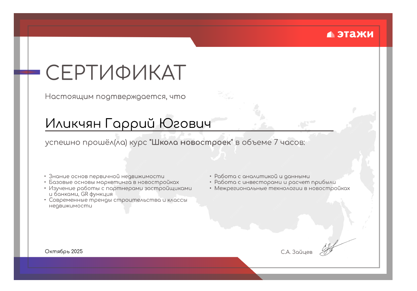 Меня зовут Гаррий Югович, и я являюсь опытным риэлтором. Моя главная цель – обеспечить максимальный комфорт и удовлетворение потребностей клиентов на каждом этапе сделки. Я предлагаю индивидуальный подход к каждому клиенту, внимательно выслушиваю желания и предпочтения, чтобы помочь вам найти именно тот дом или квартиру, о которой вы мечтаете. Я активно использую современные технологии и...