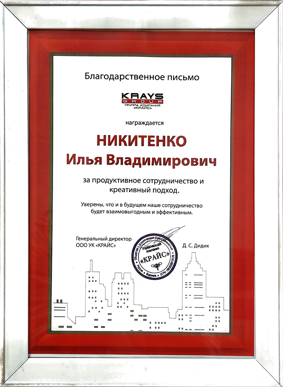 Хотелось бы выразить огромную благодарность за проделанную работу-Никитенко Илье Владимировичу!Это суперпрофессионал в вопросах недвижимости, который знает о ней все до мелочей.При этом, Илья доброжелательный,честный и открытый человек. Всегда на связи,ответит на любой ваш вопрос,поможет советом,решит любую проблему. Если кто-то ищет риэлтора и не знает к кому обратиться, смело обращайтесь к...