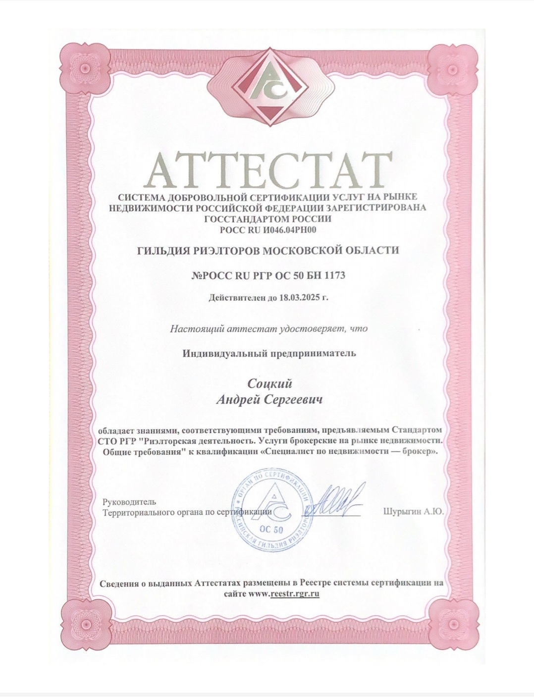 Андрей!Большое вам спасибо,ваша команда работает четко и профессионально,а самое главное-честно.Клиентам советую этого риелтора,вам не прийдется нервничать,всё за вас сделают ребята профессионалы.
