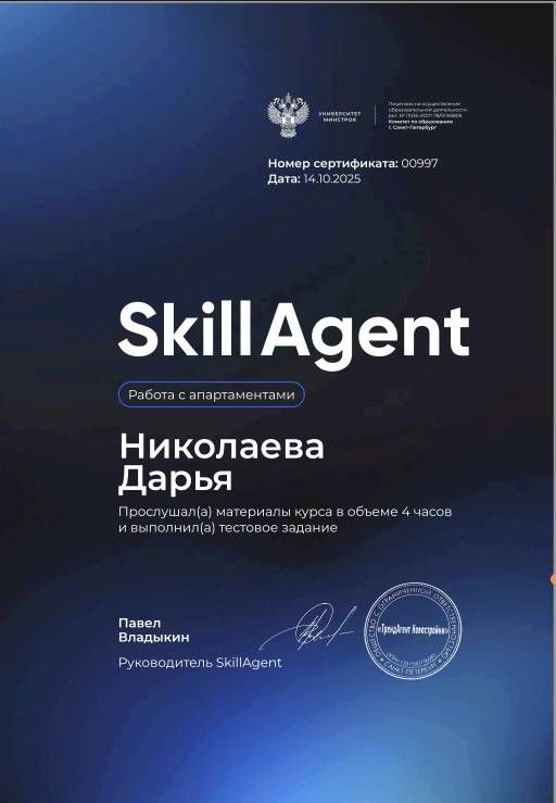 Если вам нужно найти агента по недвижимости в Санкт-Петербурге для продажи или покупки квартиры, воспользуйтесь поиском на Домклик. Ориентируйтесь на опыт работы агента, количество совершённых сделок и отзывы.