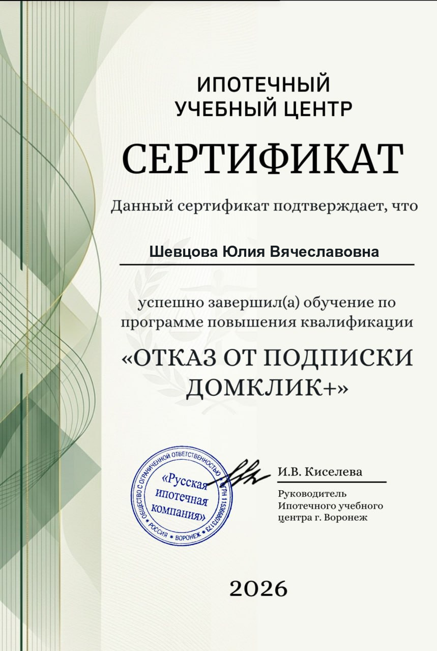 Юлия Шевцова — риелтор в Абакане. Я помогаю людям решать их жилищные вопросы: купить, продать или обменять недвижимость в Абакане и Хакасии. Моя задача — сделать процесс сделки максимально простым и безопасным для вас.