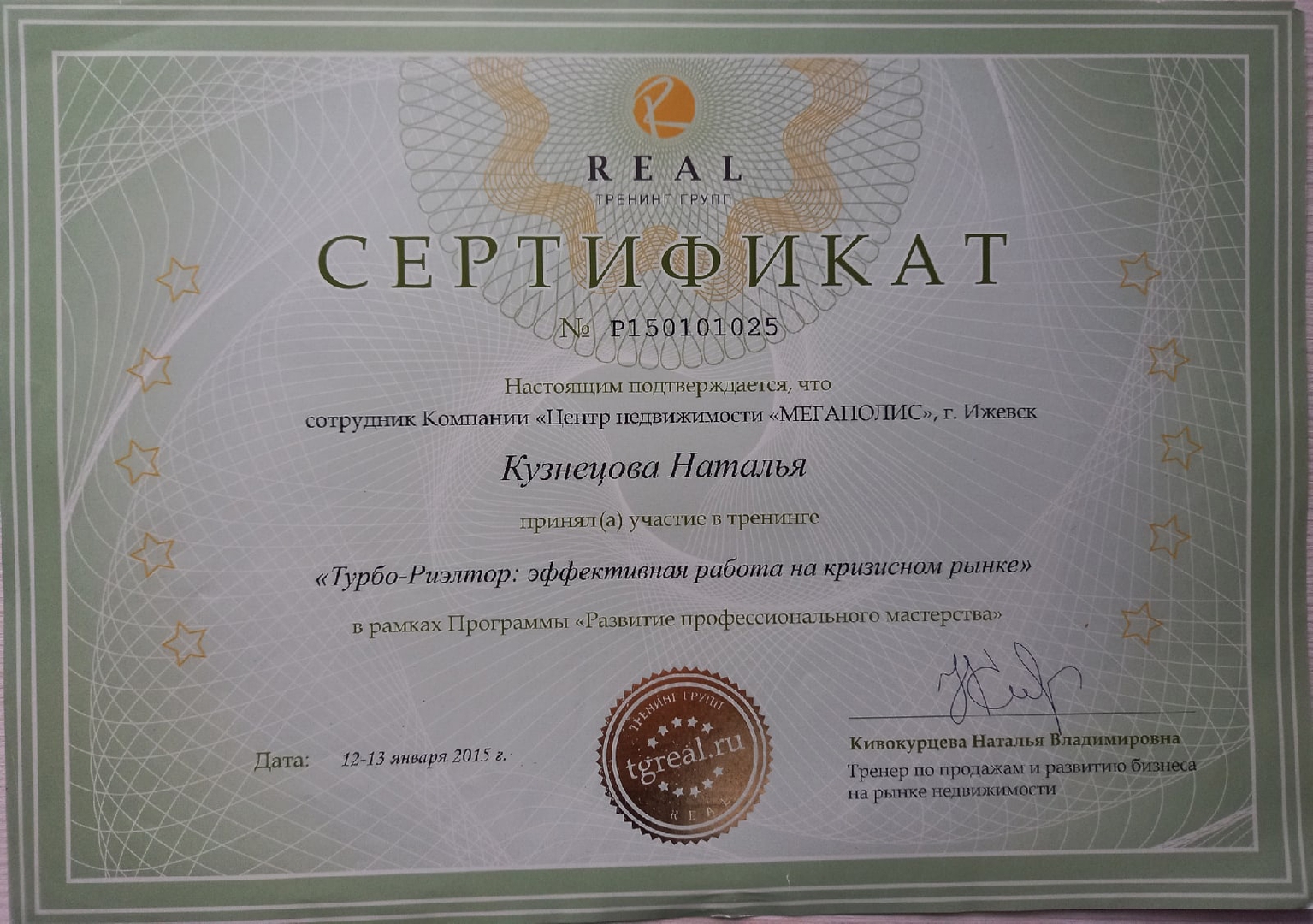 Нам очень понравилось как работает Наталья,всё делает слаженно и профессионально .Консультирует по любым вопросам купли - продажи .Я бы посоветовала всем такого риэлтора!!!!Спасибо за вашу сделку!!!!!