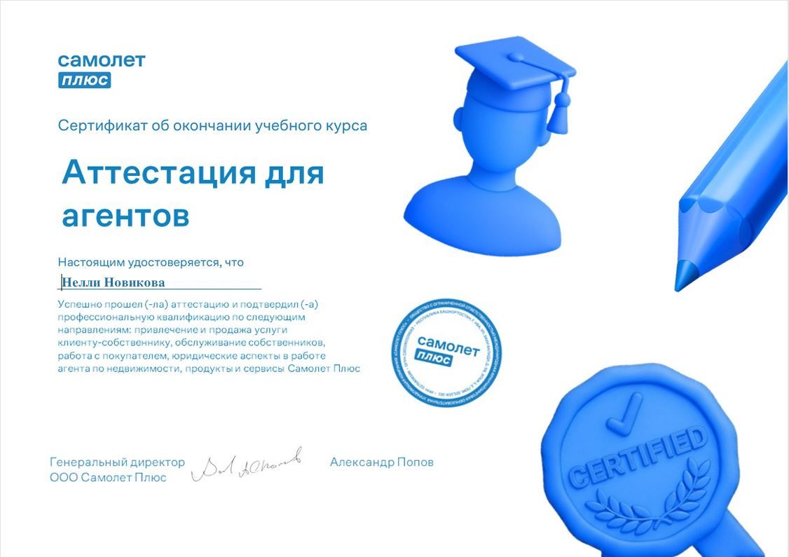Самолет Прайм — это сервис, создающий удобные цифровые продукты и многофункциональные офисы пешей доступности, чтобы закрывать все потребности пользователя: от подбора квартиры до комфортного проживания в ней Наши специалисты обеспечивают юридическую безопасность на всех этапах сделки. ☑️ Имея многолетний опыт работы, мы разбираемся во всех тонкостях в сфере недвижимости и всегда готовы ответить...
