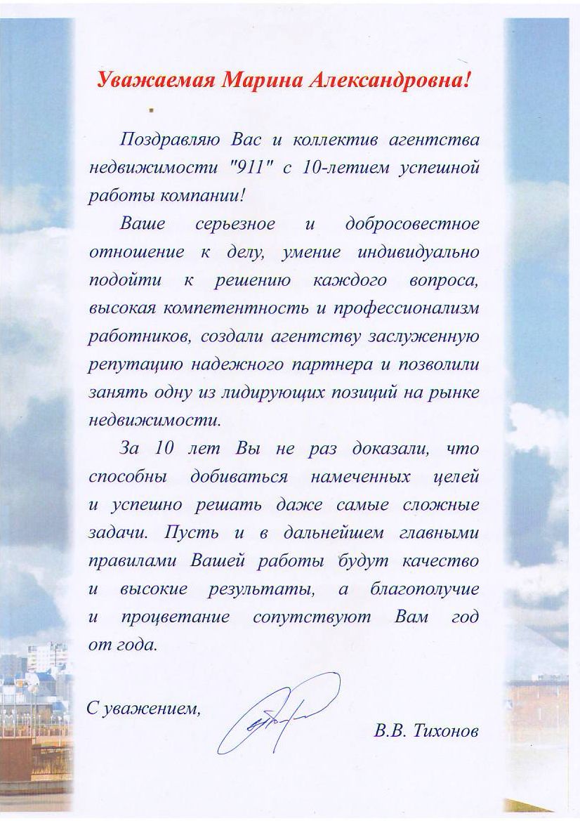 Марина Александровна, благодарим за добросовестную, быстро проделанную работу, грамотную юридическую работу в ведении дела и подготовке документов. В дальнейшем Вам желаем процветать, иметь большую клиентскую базу, здоровья, удачи, всех благ! С уважением, Мельниковы Влад и Наталья