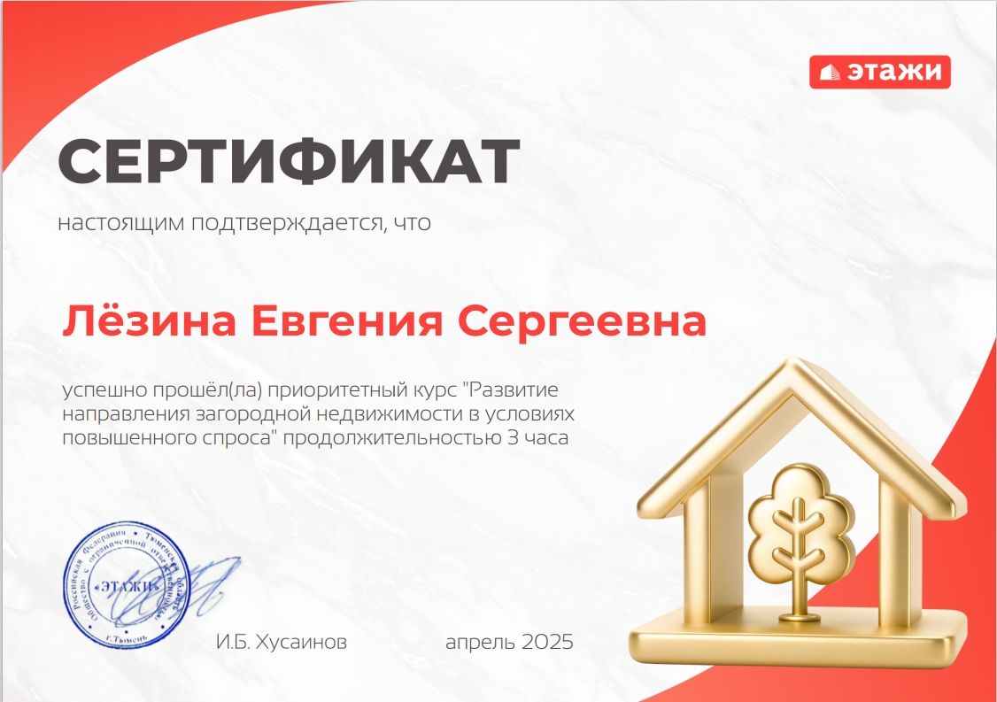 Меня зовут Евгения, специалист по недвижимости , компания Этажи, опыт работы 2 года. Десятки успешных сделок. Приоритет довольные клиенты и честные сделки