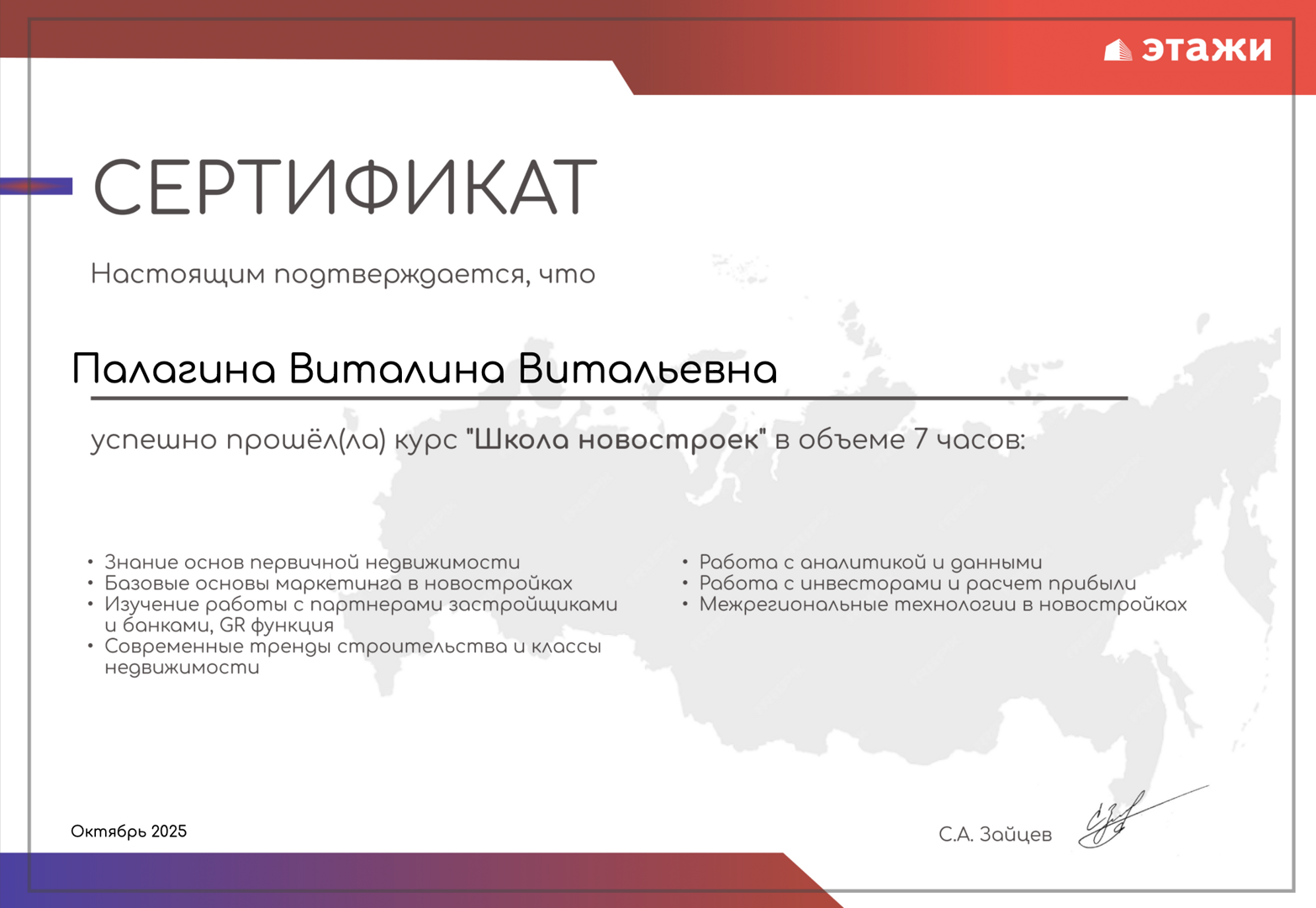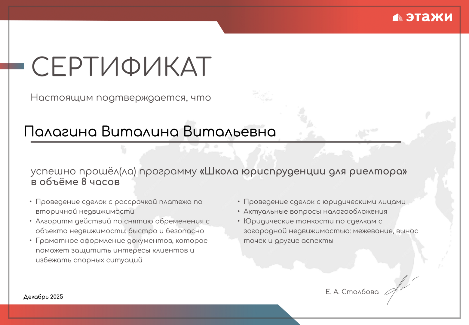 Хочу оставить отзыв о работе риелтора Виталины из агентства «Этажи». С Виталиной мы познакомились случайно — её пост про льготную семейную ипотеку переслала мне дочь. Предложение показалось интересным: низкая ставка, комфортный платёж и возможность использовать маткапитал. Мы списались, созвонились и стали подбирать варианты. Сначала рассматривали квартиры со сдачей в 2026–2027 году, но с...