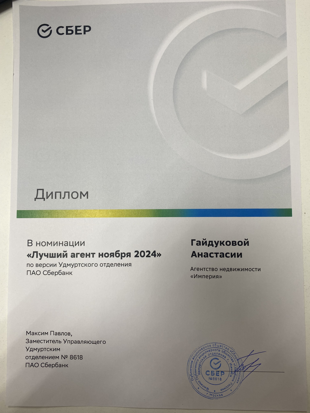 Работа с Анастасией была более чем ,на отлично её подход в сопровождении сделки ПРОСТО СУПЕР