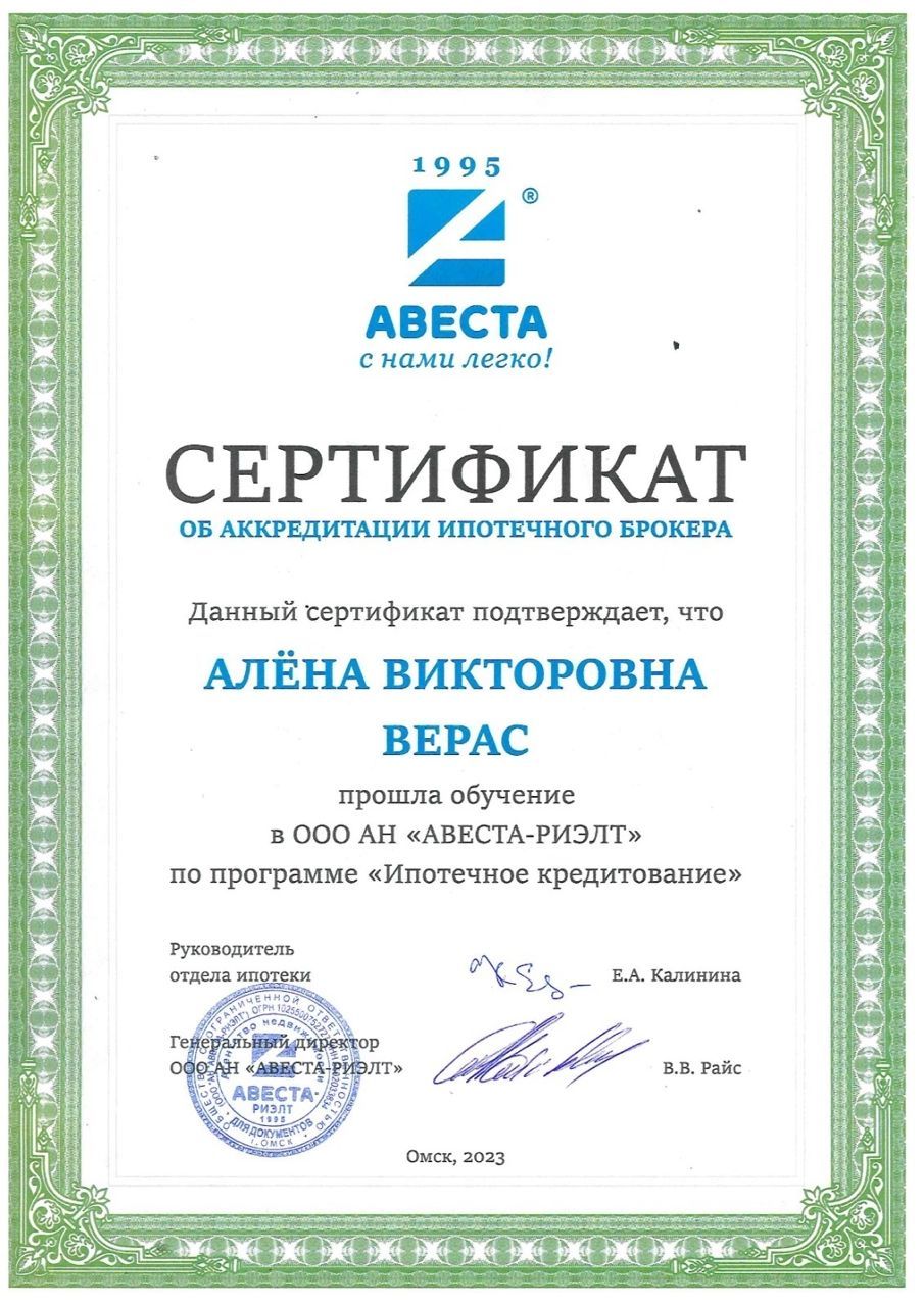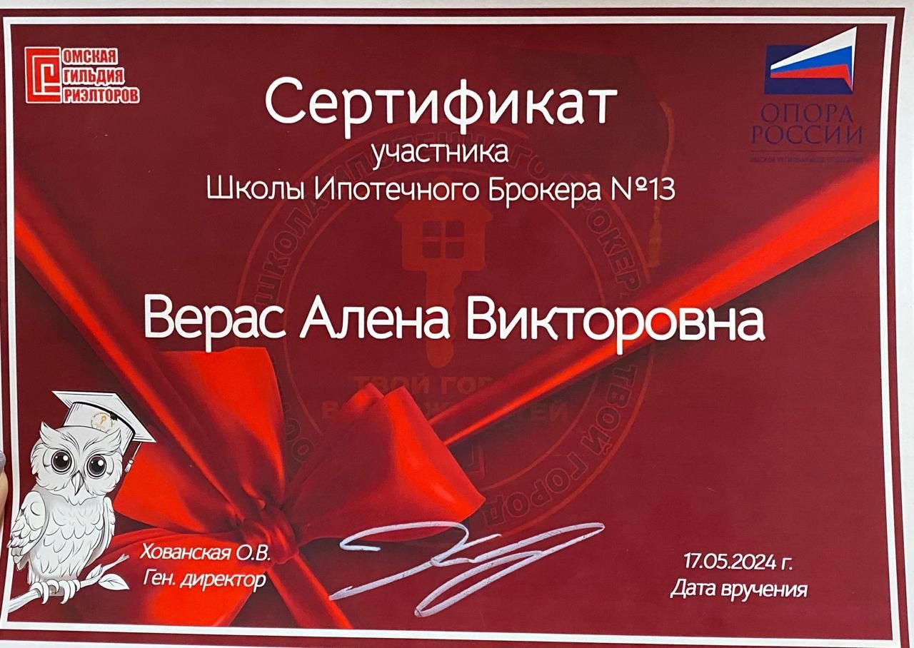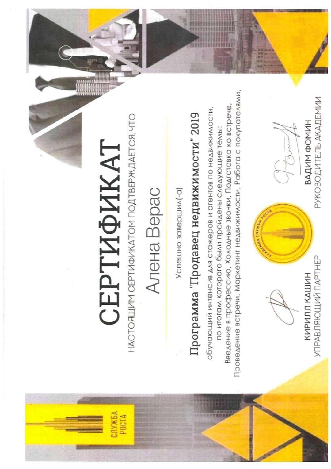 Выражаю благодарность риелтору Верас Алёне Викторовне за проделанную работу. Алёна грамотный специалист, на всех этапах всё разъясняла, была всегда на связи, что немаловажно. В общении очень приятный и позитивный человек. Сделка прошла быстро. Спасибо! Рекомендую всем, кто хочет работать с профессионалом своего дела!