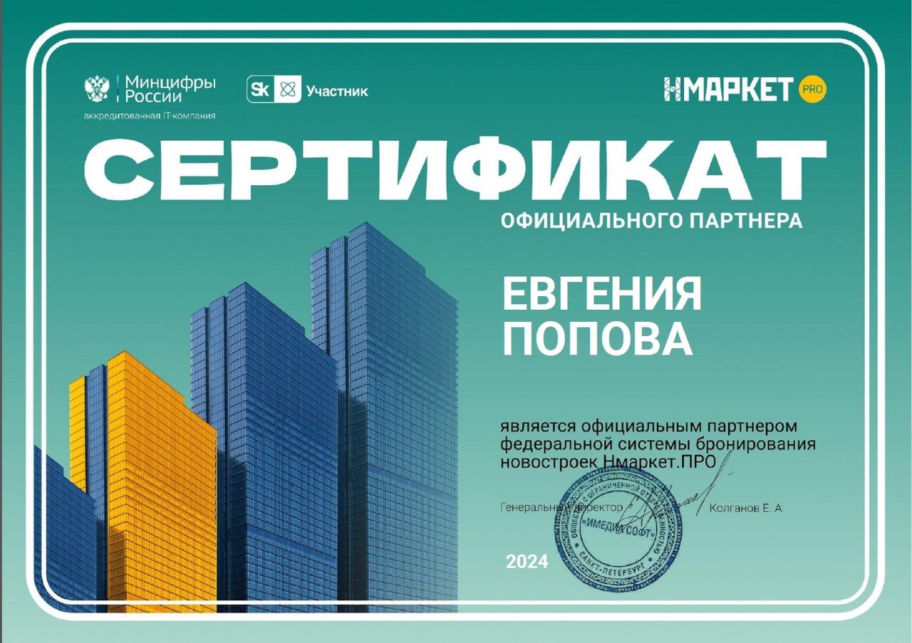 Меня зовут Евгения Попова — сертифицированный риелтор с опытом работы в ведущих агентствах недвижимости — АН «Этажи» и ЦН «Домхит». Работаю с вторичной и первичной недвижимостью. Сопровождаем сделки «под ключ» — проверяем историю объекта, готовим документы, минимизируем риски. Экспертно подбираем и сопровождаем покупку квартиру в новостройке по выгодным ценам на всём побережье Крыма:...