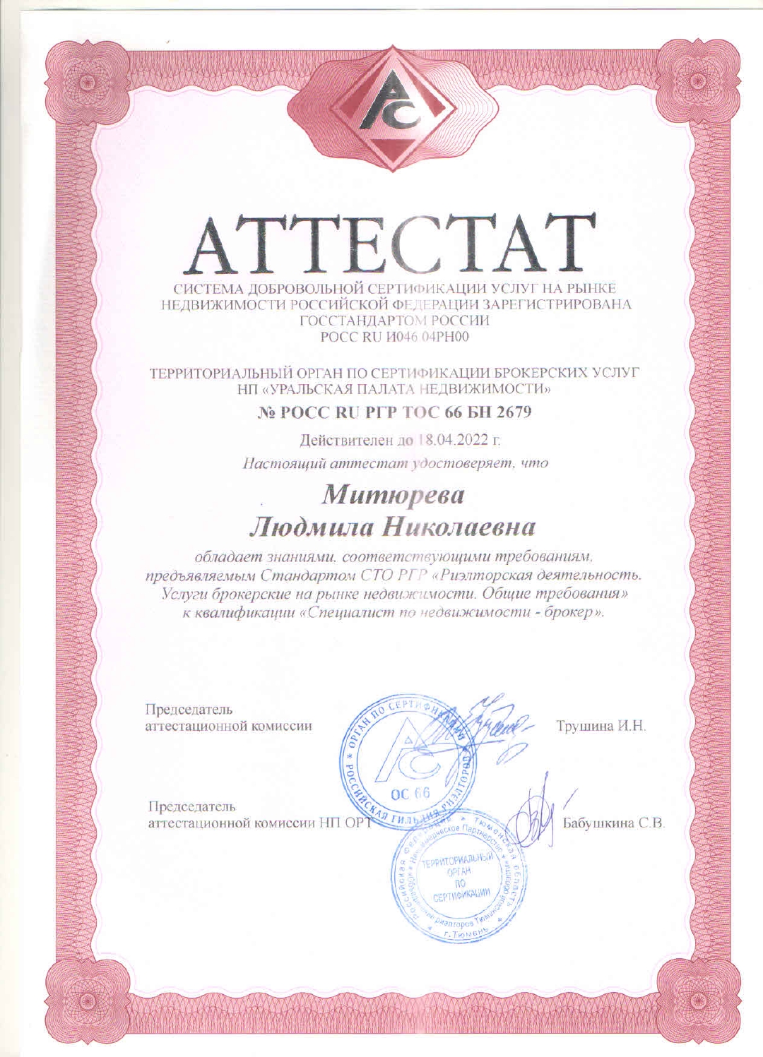 Сертифицированный брокер, аттестат №РОСС RU РГР ТОС БН 2679