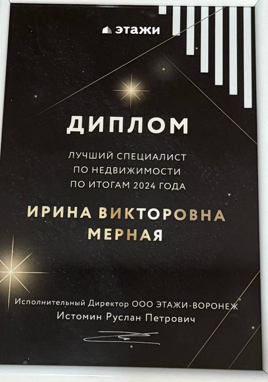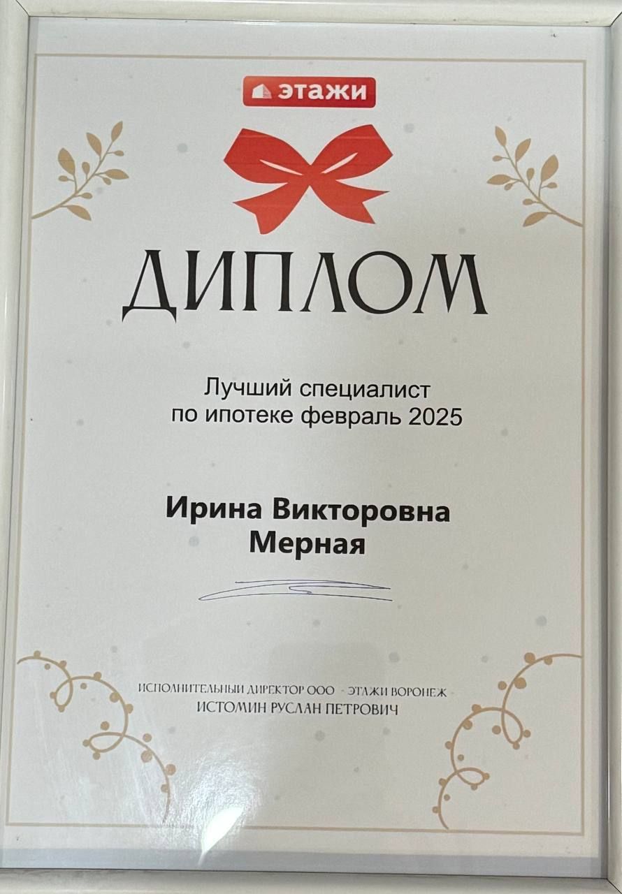 Хочу поблагодарить Ирину Мерную за невероятно качественную работу! Она сопровождала нас от первого звонка до момента выбора квартиры: помогла оформить семейную ипотеку, подсказала, какие справки и документы нужны, заранее предупредила о возможных нюансах и помогла избежать ошибок. Особенно ценно, что Ирина искренне включилась в наш запрос — уточняла детали, подбирала варианты под наш образ жизни...