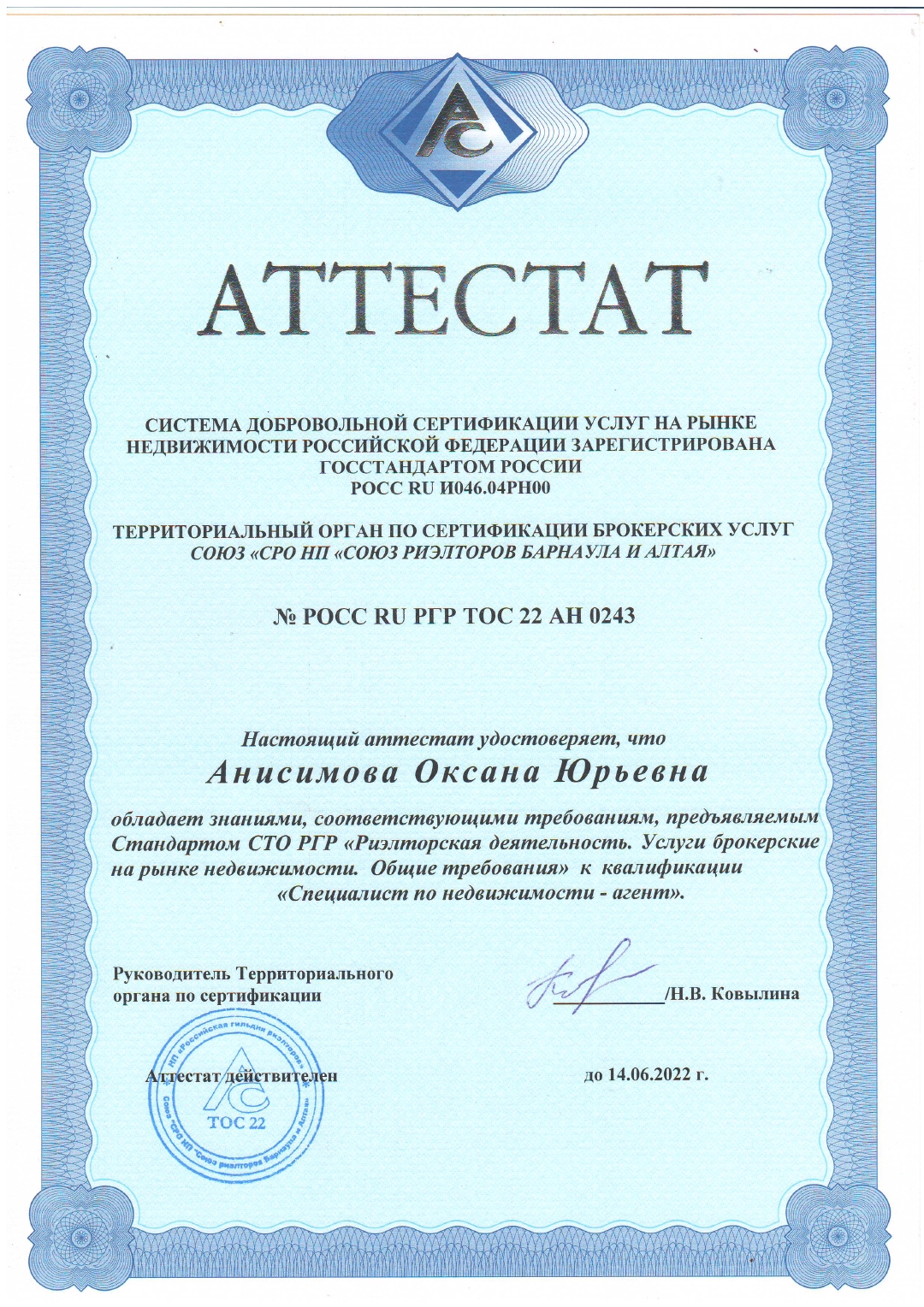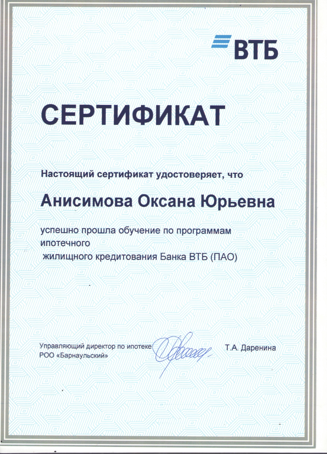 Хочу поблагодарить специалиста по недвижимости Анисимову Оксану за помощь в приобретении и оформлении квартиры. Грамотный и профессиональный подход. Внимательна и ответственна от начала и до конца сделки !