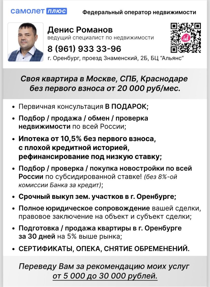 Если вам нужно найти агента по недвижимости в Оренбурге для продажи или покупки квартиры, воспользуйтесь поиском на Домклик. Ориентируйтесь на опыт работы агента, количество совершённых сделок и отзывы.